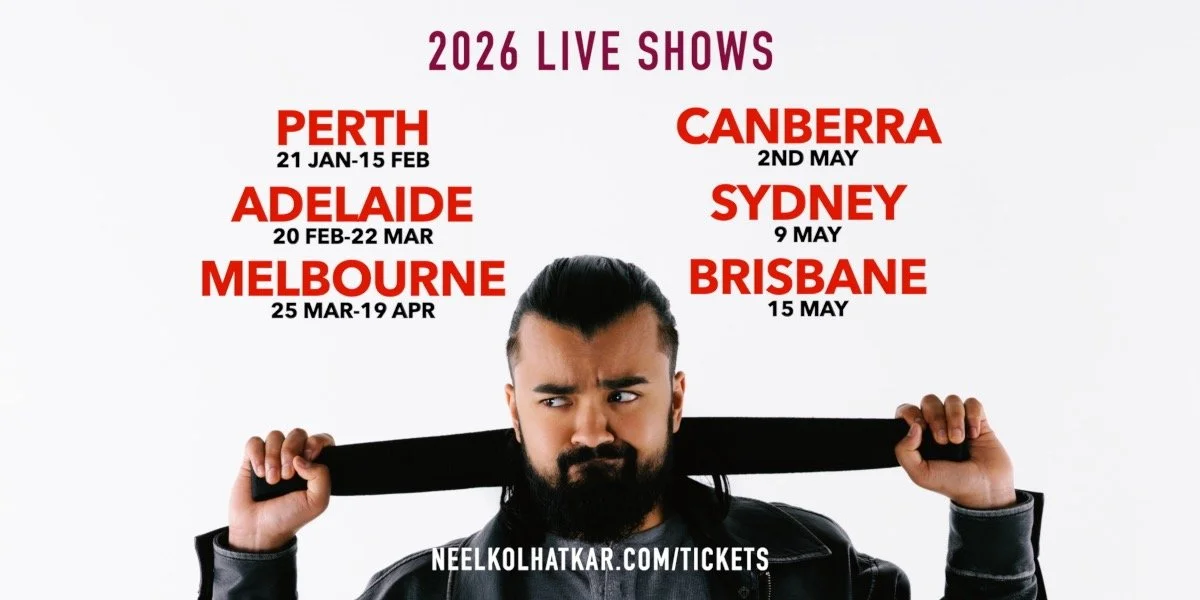 In 2026 Neel will be taking his BRAND NEW SHOW ‘Black Belt Comedy’ to all major cities in Australia. If you saw him in 2025 this is a new show with new material.